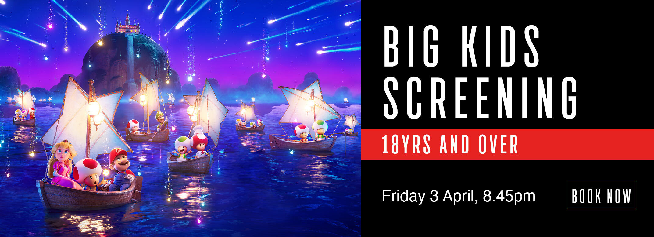 Join us for a late-night Big Kids Screening of Illumination and Nintendo’s THE SUPER MARIO GALAXY MOVIE on Friday 3 April, an exclusive 18+ session where you can kick back, relax, and enjoy the adventure (little koopas not invited!).