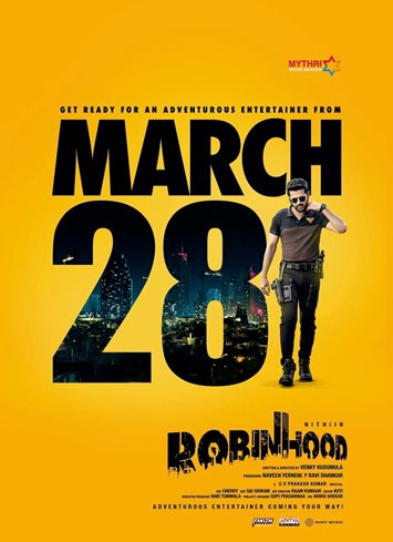 Robinhood - #VN2 Mythri Movie Makers starring Nithiin as lead actor. Directed by Venky Kudmula, Music by GV Prakash Kumar, Produced by Naveen Yerneni & Y. Ravi Shankar under Mythri Movie Makers Banner.