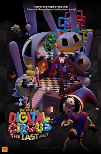"The viral internet sensation "The Amazing Digital Circus" comes to its long-awaited conclusion in a feature-length theatrical release! This "Last Act" combines episode 8 with the all new, hour long episode 9 for fans to see before anyone else in the world.