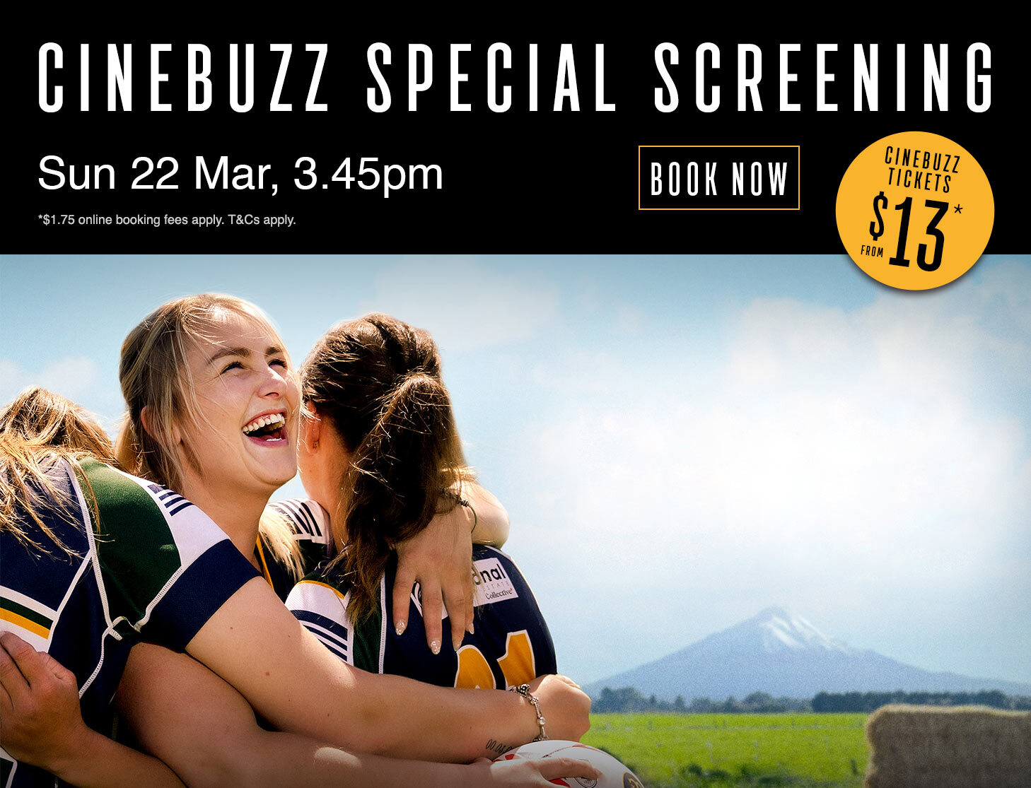 Join us for a Cinebuzz Special Screening of the Kiwi Sports Documentary NO TEARS ON THE FIELD at select locations on Sunday 22 March, 3.45pm. Plus, Cinebuzz Members can save with tickets from just $13*.